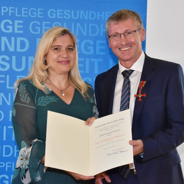Verleihung des Bundesverdienstkreuzes am Bande durch die Bayerische Gesundheitsministern Melanie Huml. Bild: StMPG